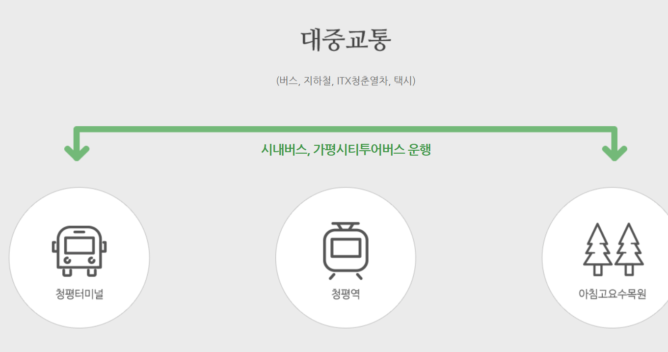 ▪ 시내버스, 가평시티투어버스 : 청평터미널, 청평역 → 아침고요수목원