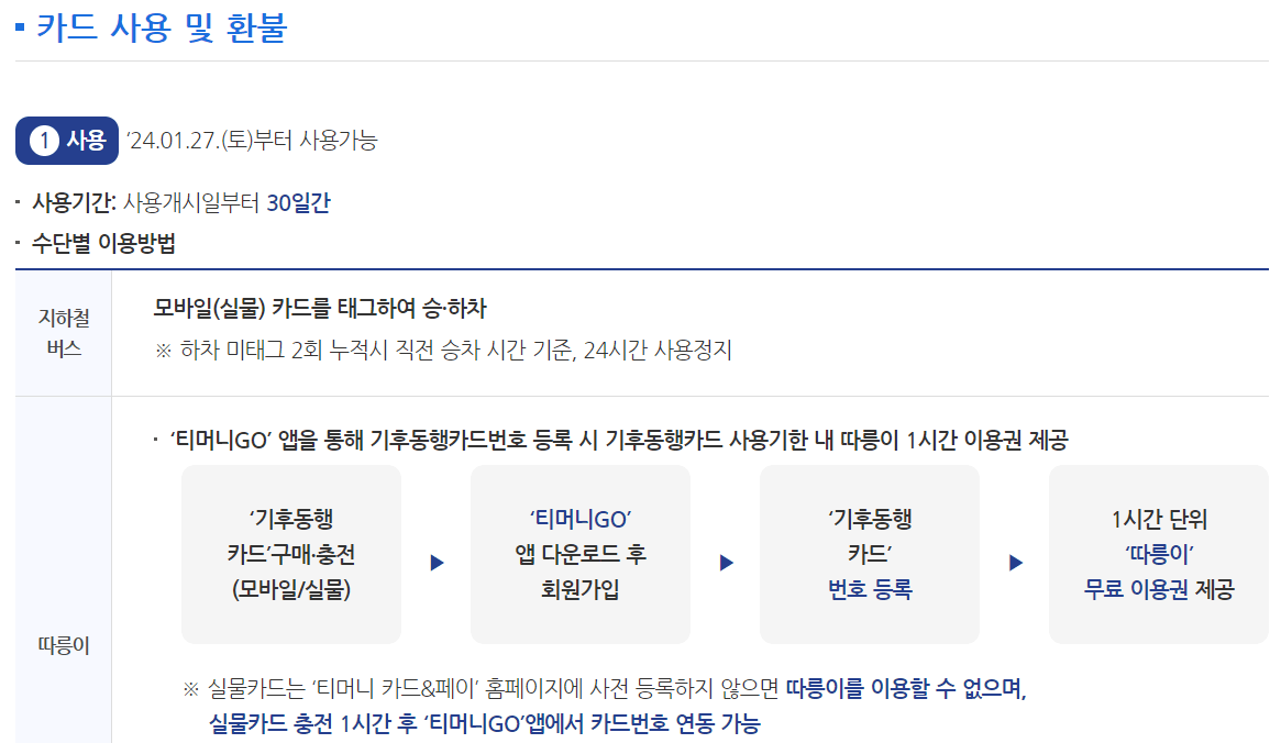 기후동행카드는 1회 요금 충전으로 30일간 대중교통(지하철, 버스), 따릉이를 무제한 이용할 수 있는 대중교통 통합 정기권입니다